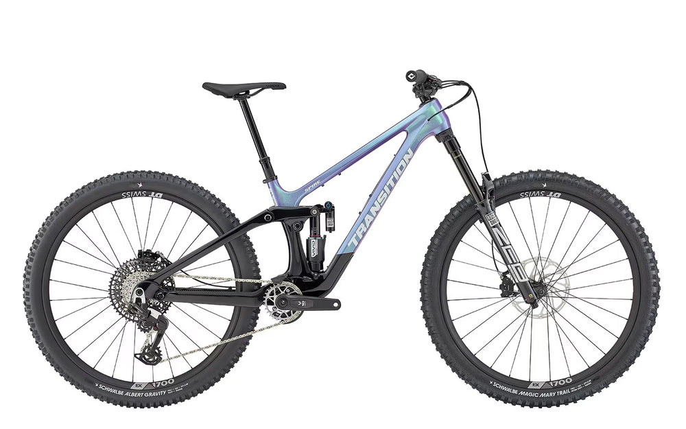 Transition pretende que sea lo más fácil posible experimentar un gran rendimiento de la suspensión trasera. El sistema de suspensión GiddyUp está diseñado para comportarse de manera intuitiva en una amplia gama de configuraciones. Con una progresión de casi el 23 % y la evolución más actual de nuestra cinemática de suspensión GiddyUp, la Spire tiene un excelente equilibrio de soporte y sensibilidad a los pequeños baches. El sistema anti-squat está ajustado para mejorar el rendimiento del pedaleo y proporciona una plataforma que al bombear no sacrifique eficiencia.